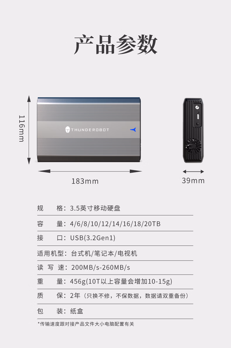 雷神3t移动硬盘6t3.5英寸大容量桌面存储type-c高速台式机笔记本外接机械硬盘4t便携备份扩容 18TB雷神飓风移动硬盘 独立开关+风扇散热