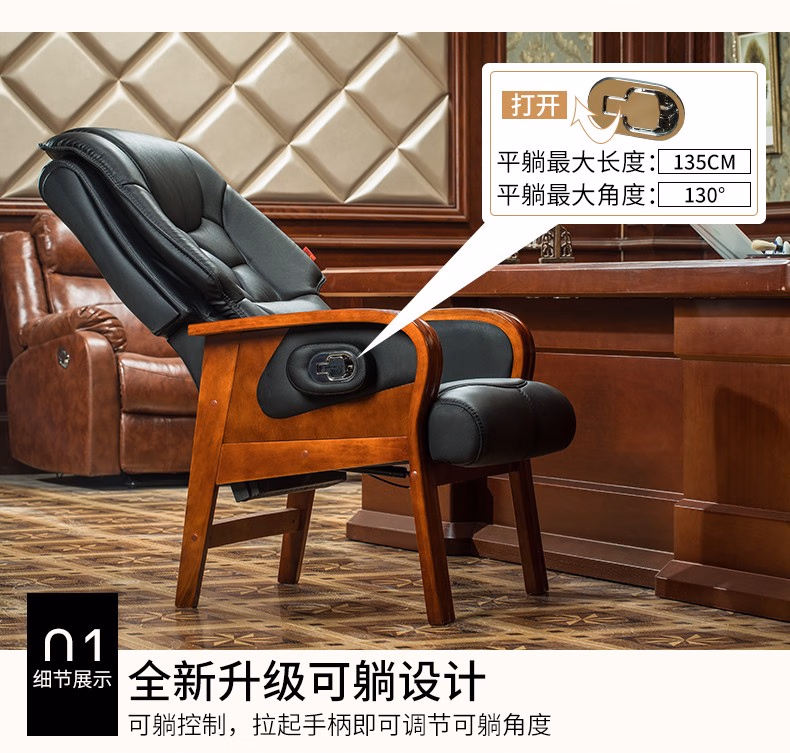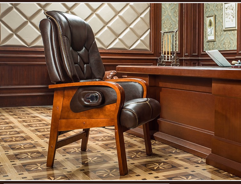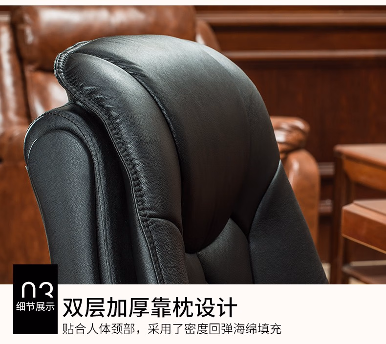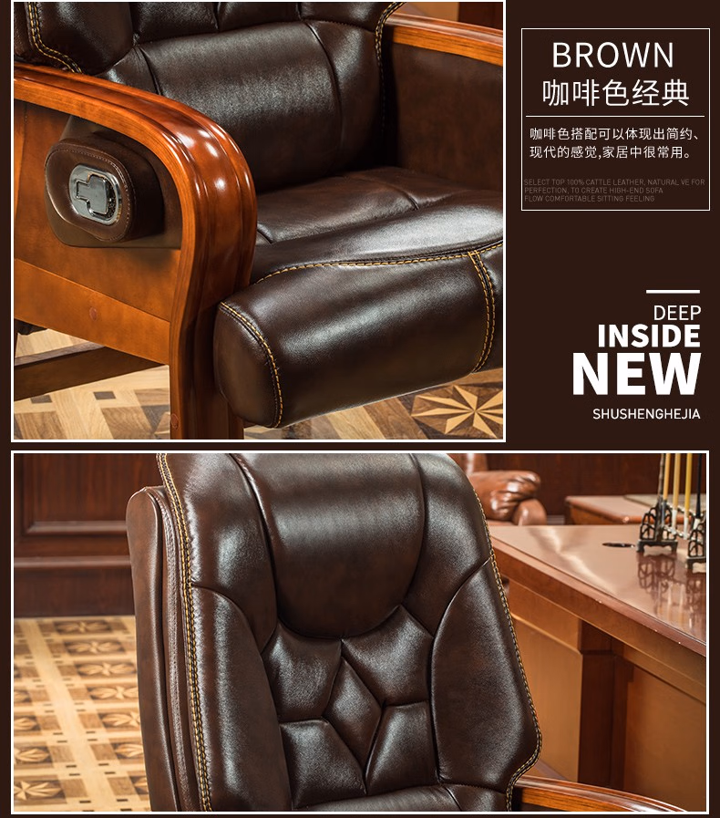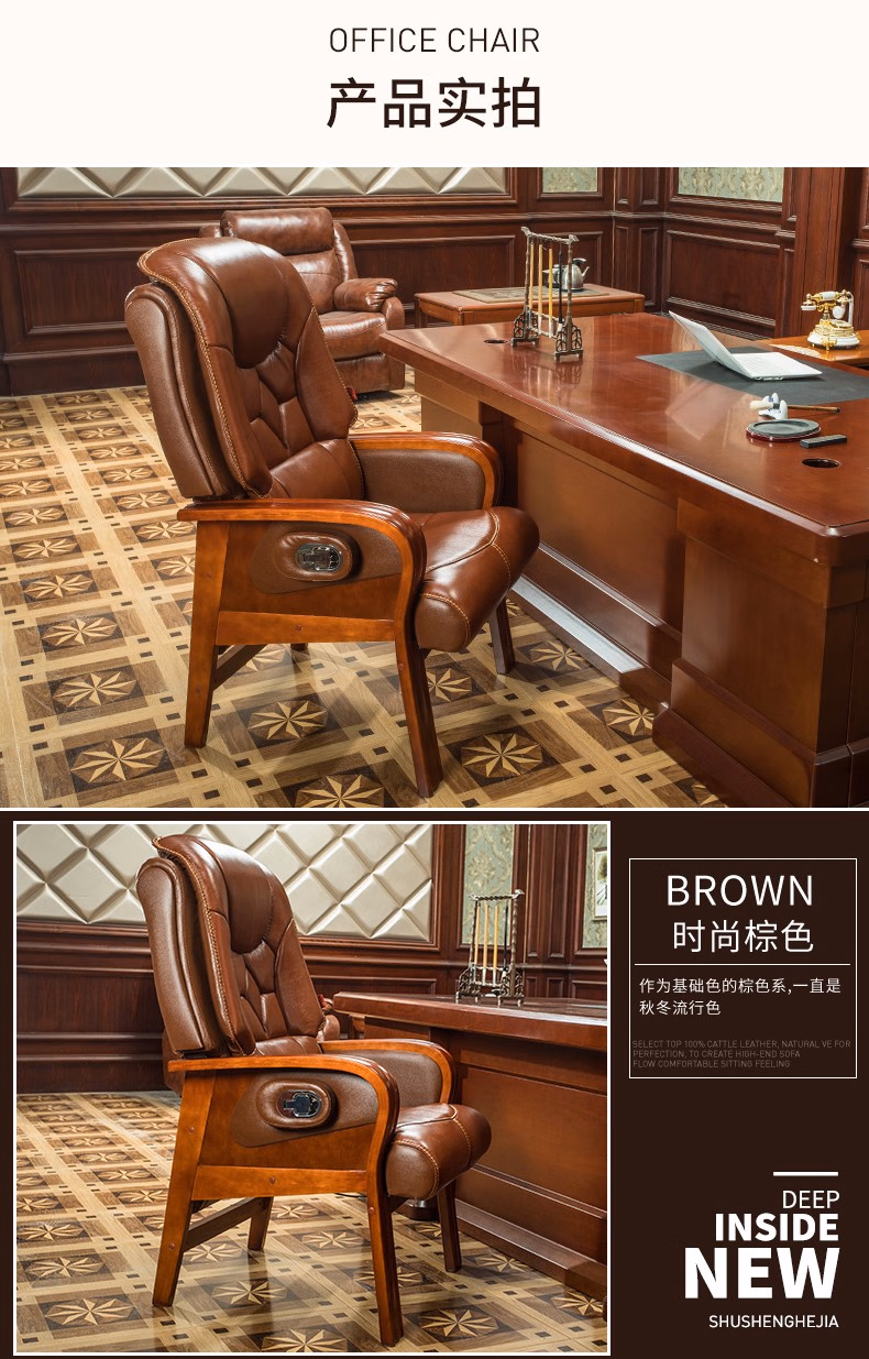 名流都市老板椅可躺商务会议椅电脑椅子靠背家用座椅舒适办公室真皮书桌椅 棕色-头层牛皮-免安装