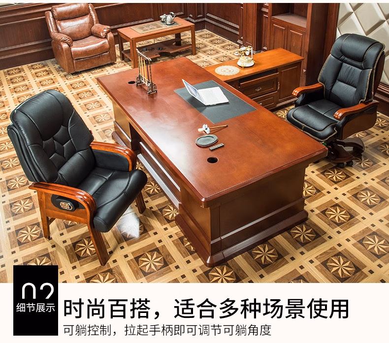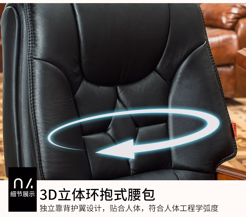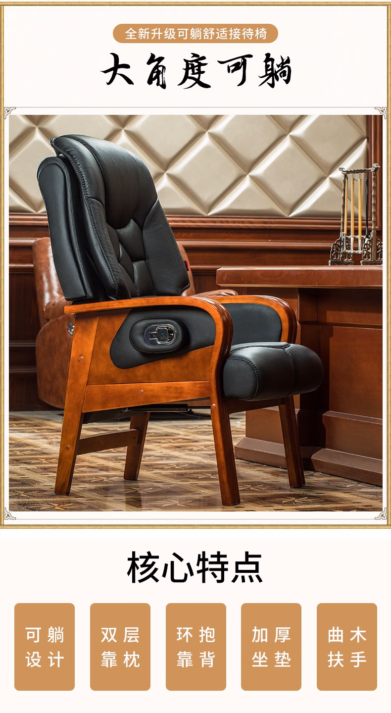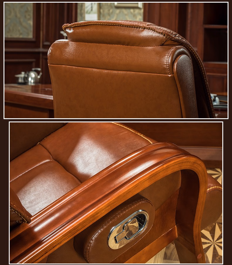 名流都市老板椅可躺商务会议椅电脑椅子靠背家用座椅舒适办公室真皮书桌椅 棕色-头层牛皮-免安装