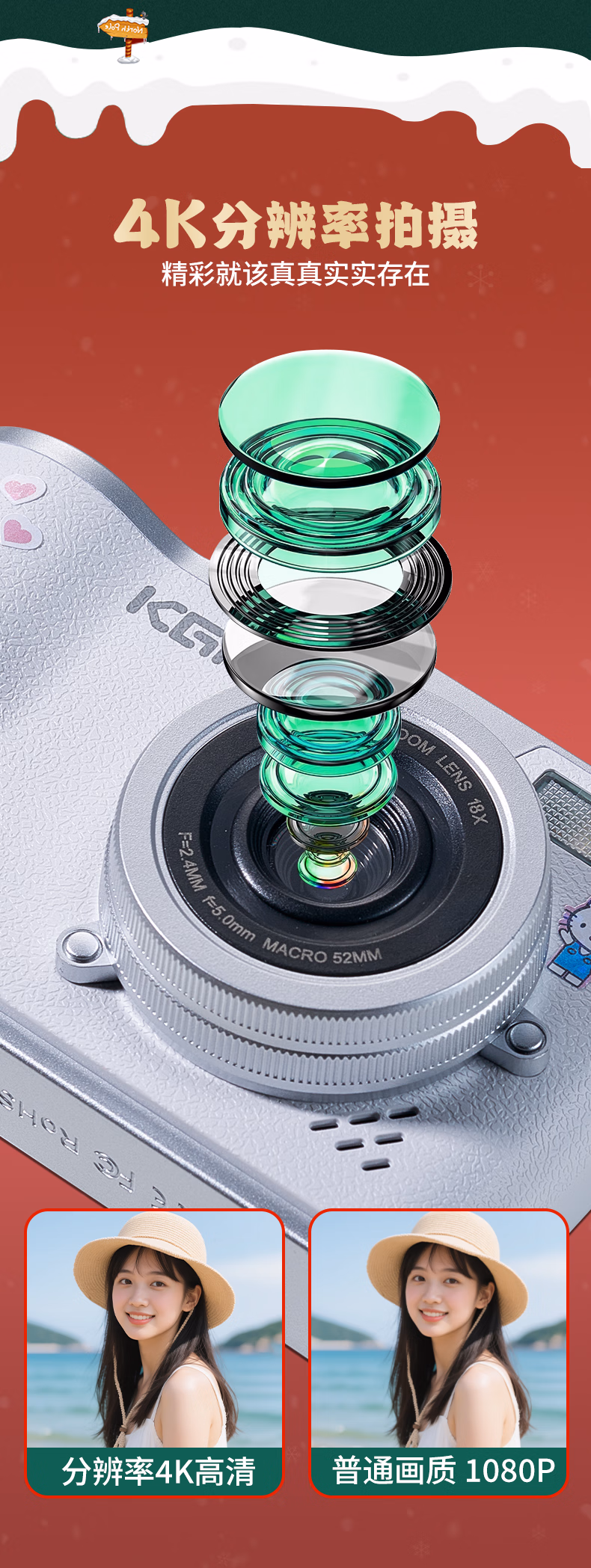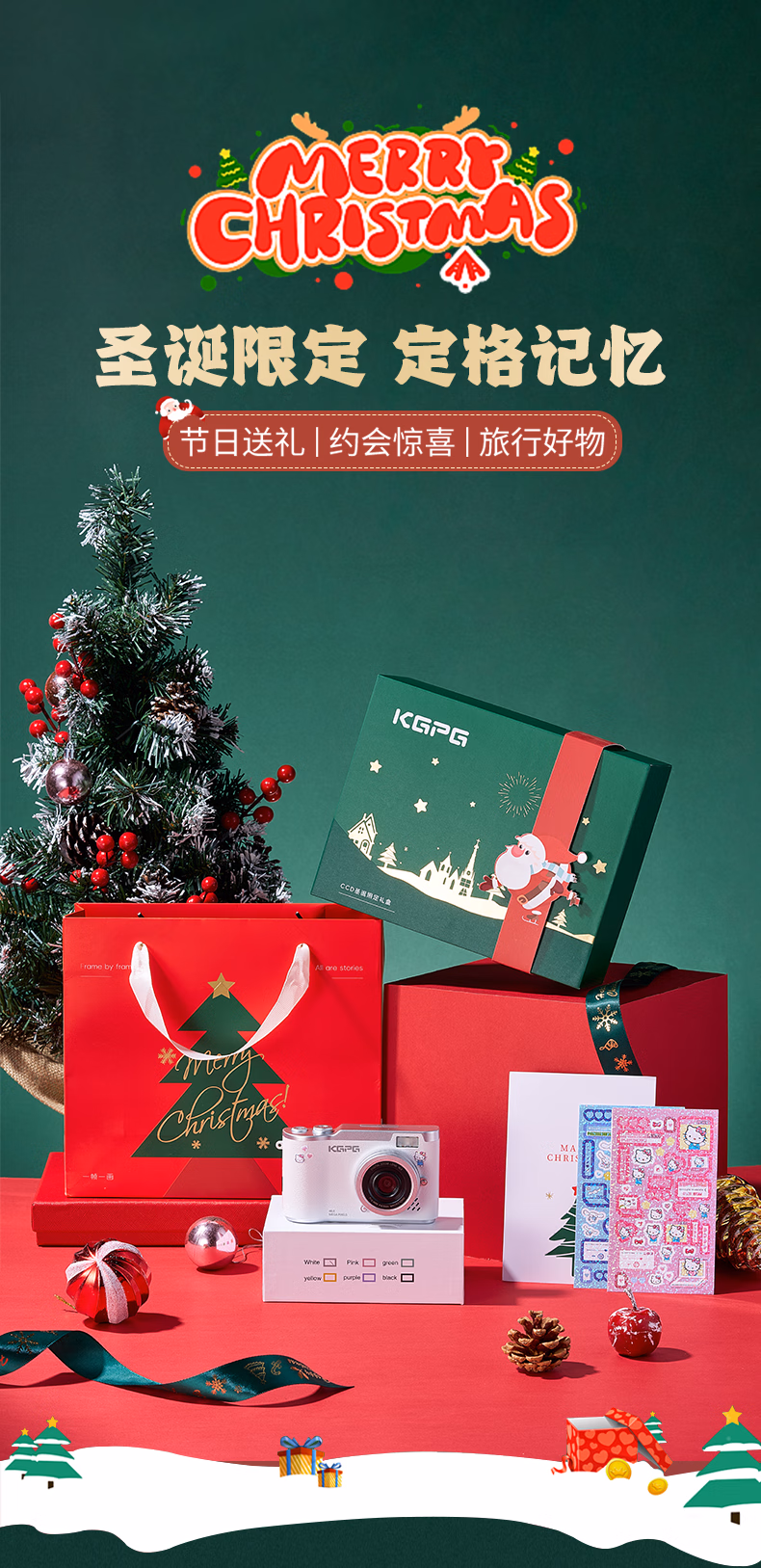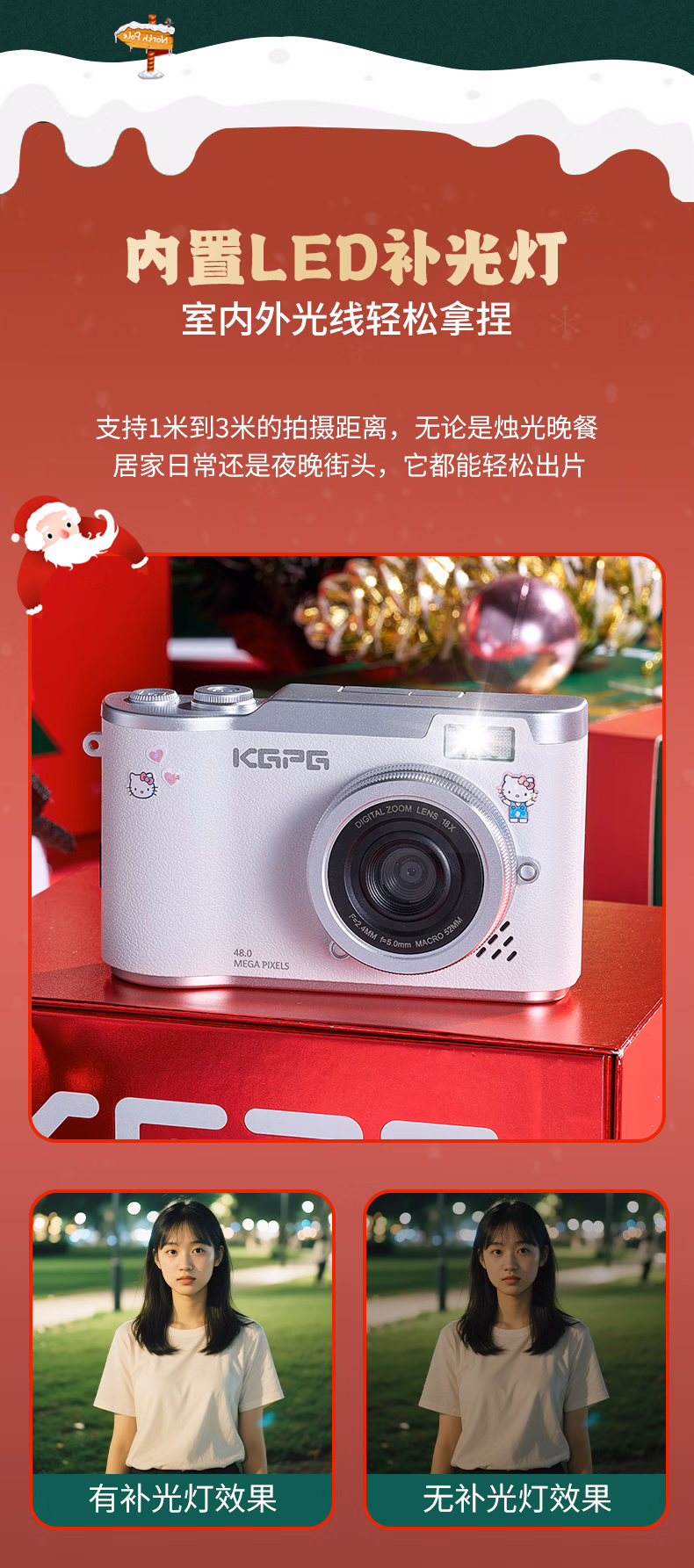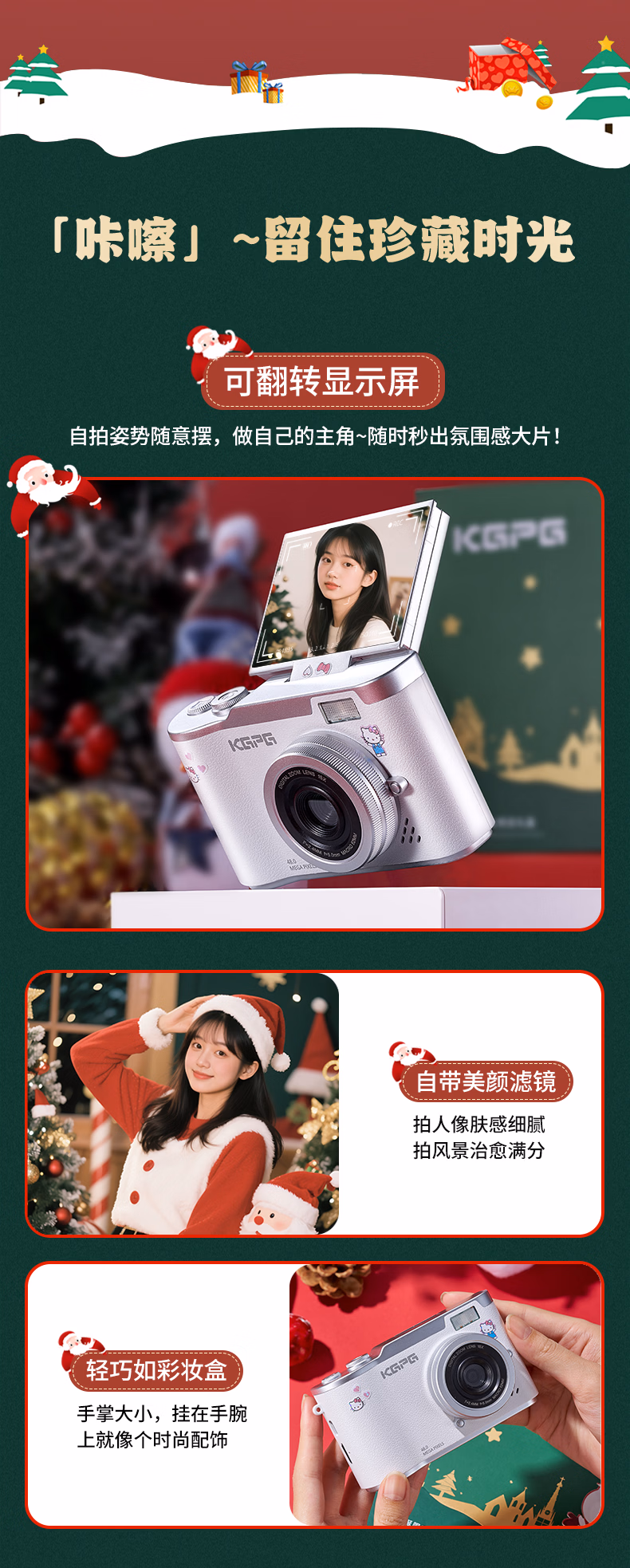 KGPG【圣诞节限定装】ccd照相机翻转屏数码相机学生党拍立得自拍旅游专用生日礼物送女友朋友相机 白色
