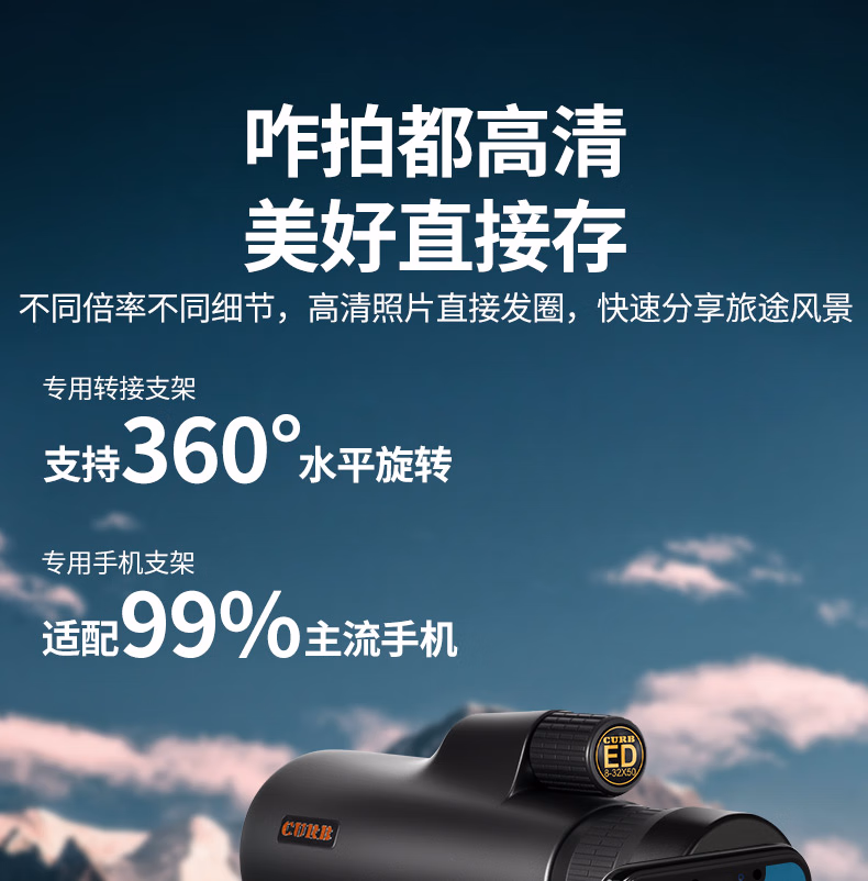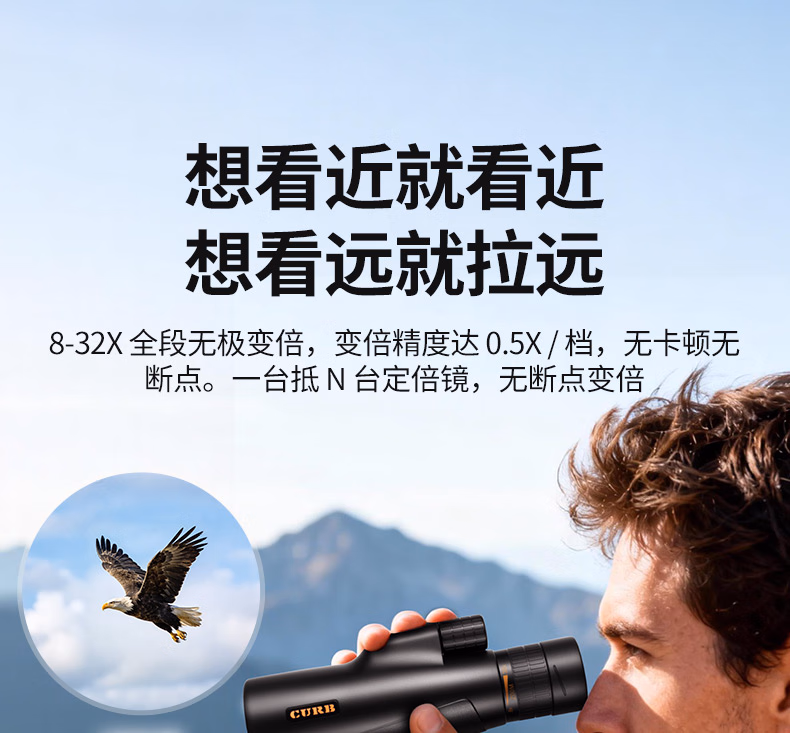 佳泊单筒望远镜ED高清高倍军事带夜视8000专业级成人防抖手机长焦镜头 变倍8-32x50超清放大快速聚焦