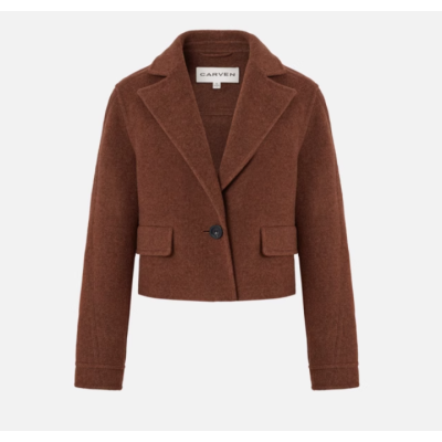 CARVEN outlet卡纷女装复古羊毛夹花咖双面呢一粒扣收腰短外套