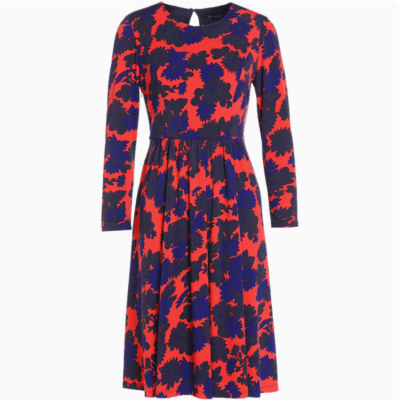 沐兰女装新款剪影艺术印花都市休闲圆领连衣裙时尚裙子