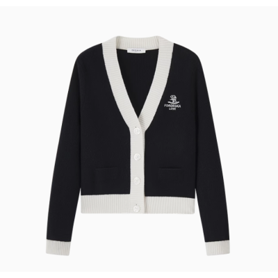 DEGAIA迪嘉雅女装秋冬黑白拼接刺绣绵羊毛毛衣针织衫短开衫外套